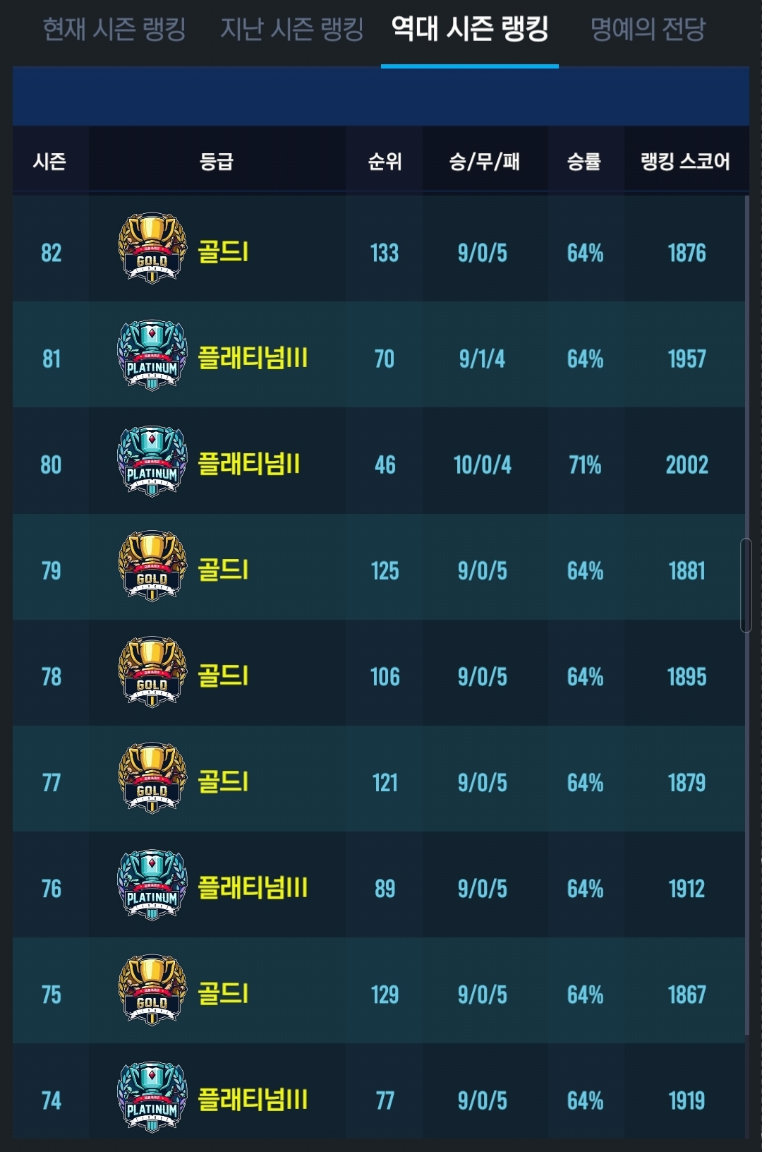 1) 랭첼 이전 시즌 in1200이상 (풀갱, 포갱 무관)