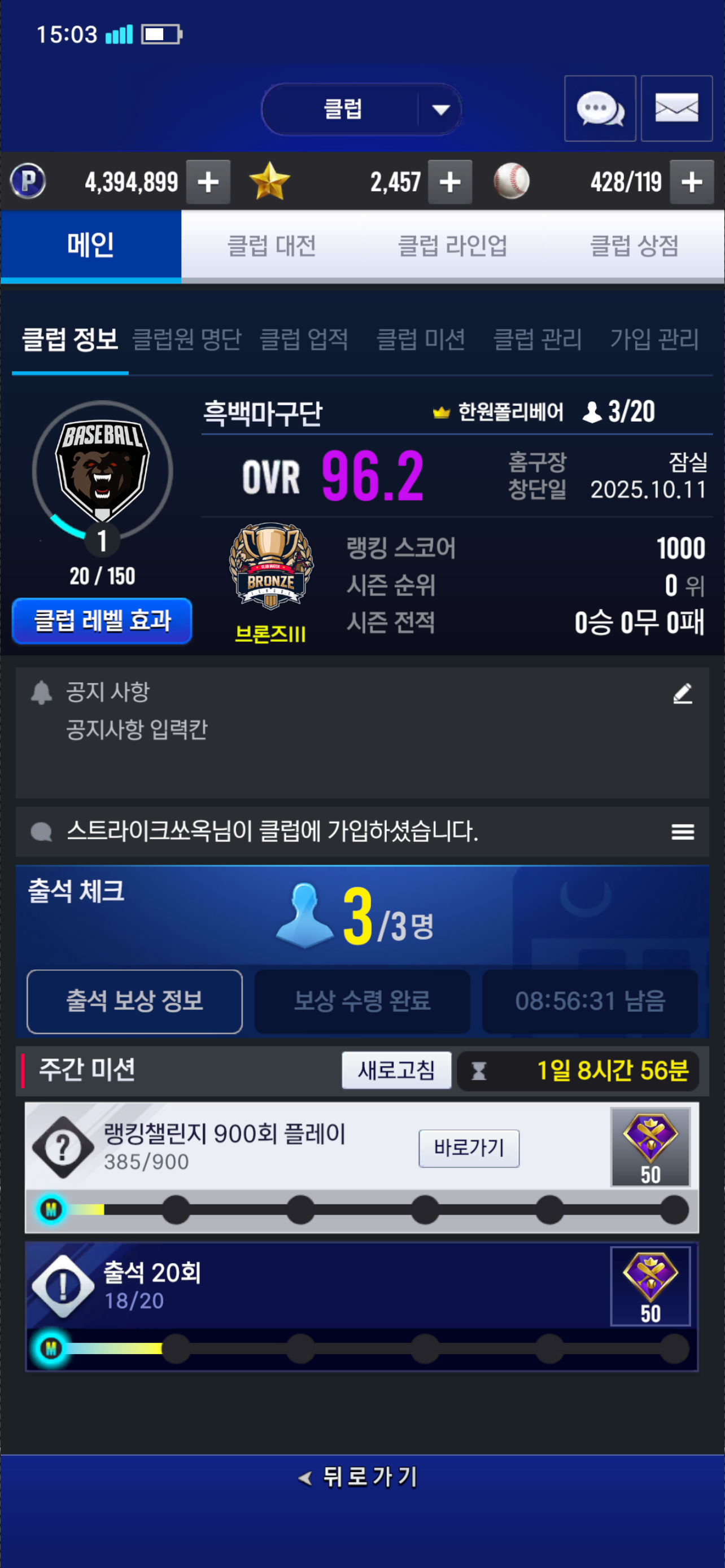 클럽 홍보 게시판 흑백마구단. 클럽원 모집!! 초보환영 한원폴리베어 2025-10-17 15:05 56 0 공유 공유 URL 복사 페이스북 왓츠앱 카카오톡 라인 레딧 닫기 공유 꾸준하게만 하면 누구나 오케이! 침목없이 재미있게!좋은정보는 서로공유! #클럽 #신규 #아무나 #누구나 #꾸준하게 0 0 댓글 0