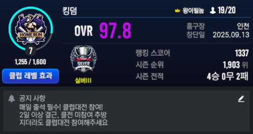 클럽과 본인계정을 업그레이드 해봐요!!