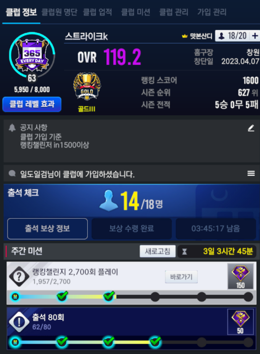 - 매일 클럽 대전 참여 가능한 분 (1주일 2경기 이상 미참시 밴, 사유가 있을 경우 제외)