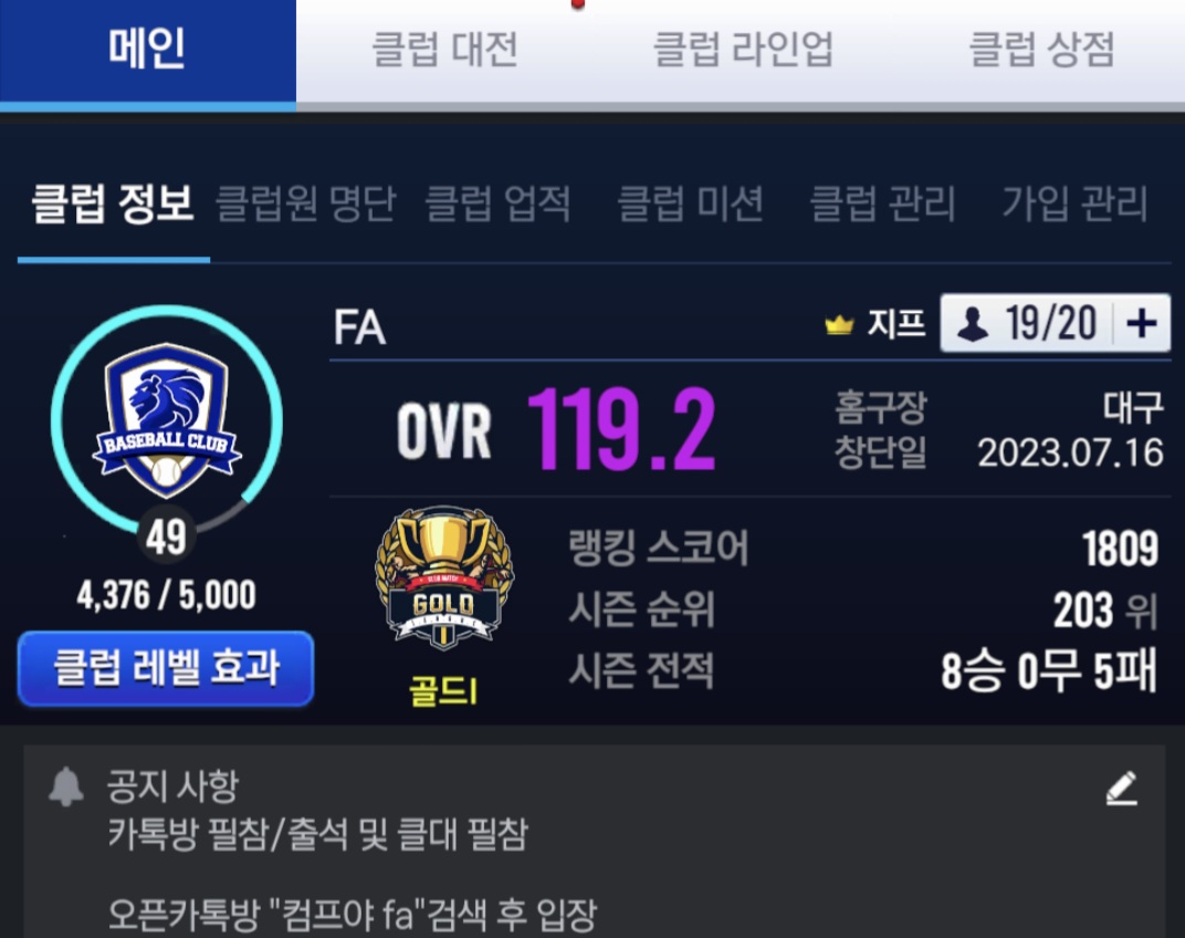 [FA] 삼성&키움클럽 FA에서 클럽원 한 분 모집합니다. (19/20)
