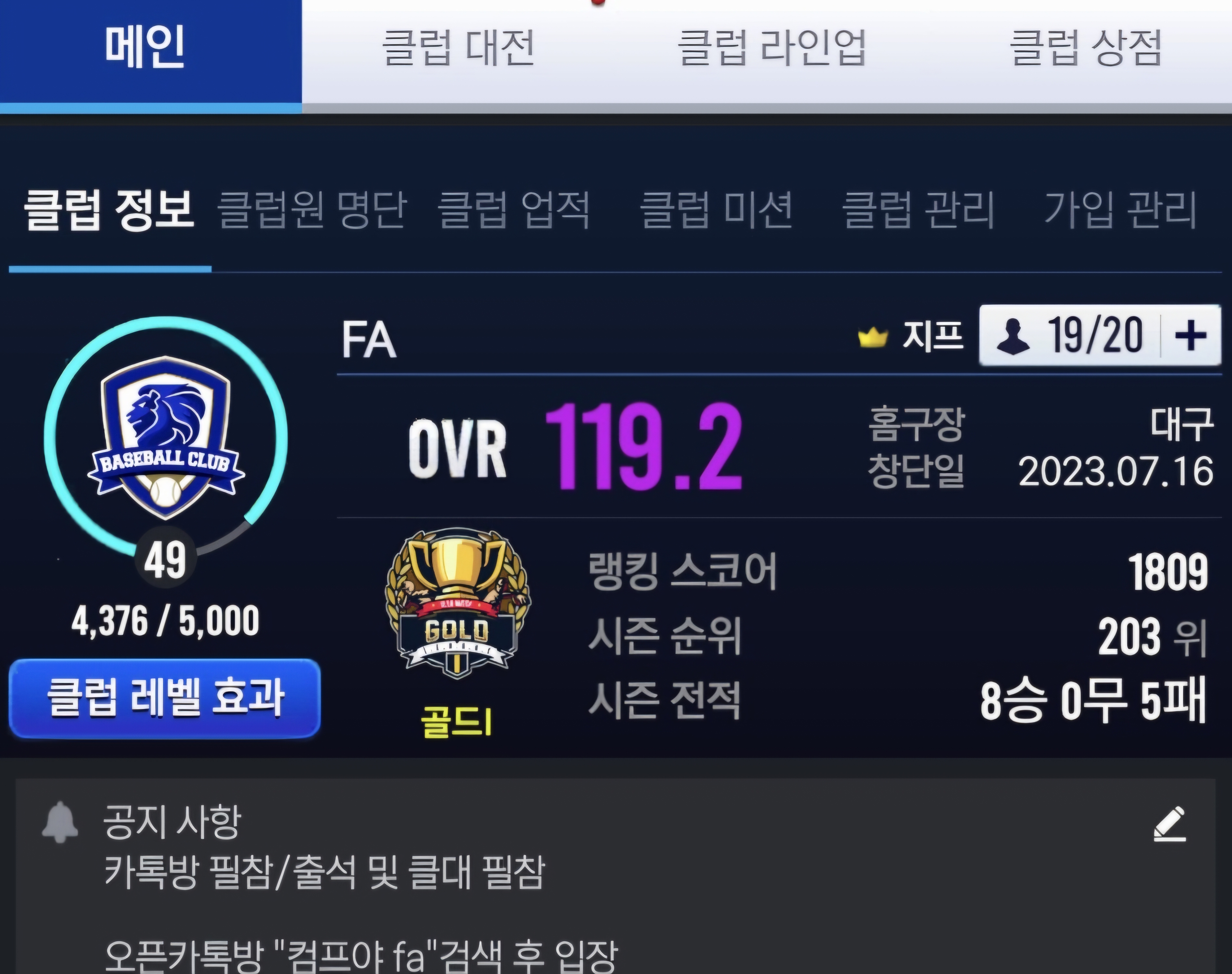 [FA] 삼성&키움클럽 FA에서 클럽원 한 분 모집합니다. (19/20)
