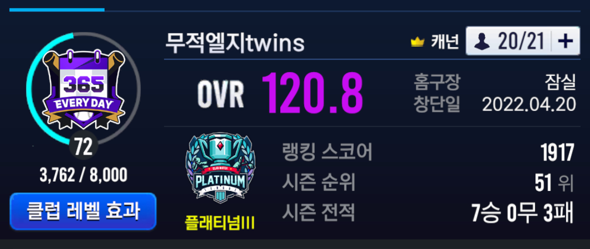 총 클럽원 21명으로 뚫어 두었습니다.