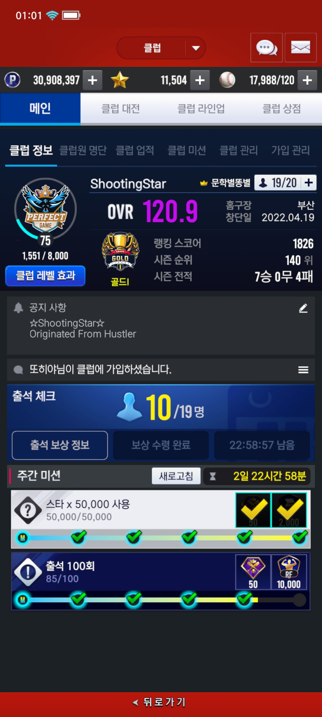 슈팅스타에서 클럽원 모십니다