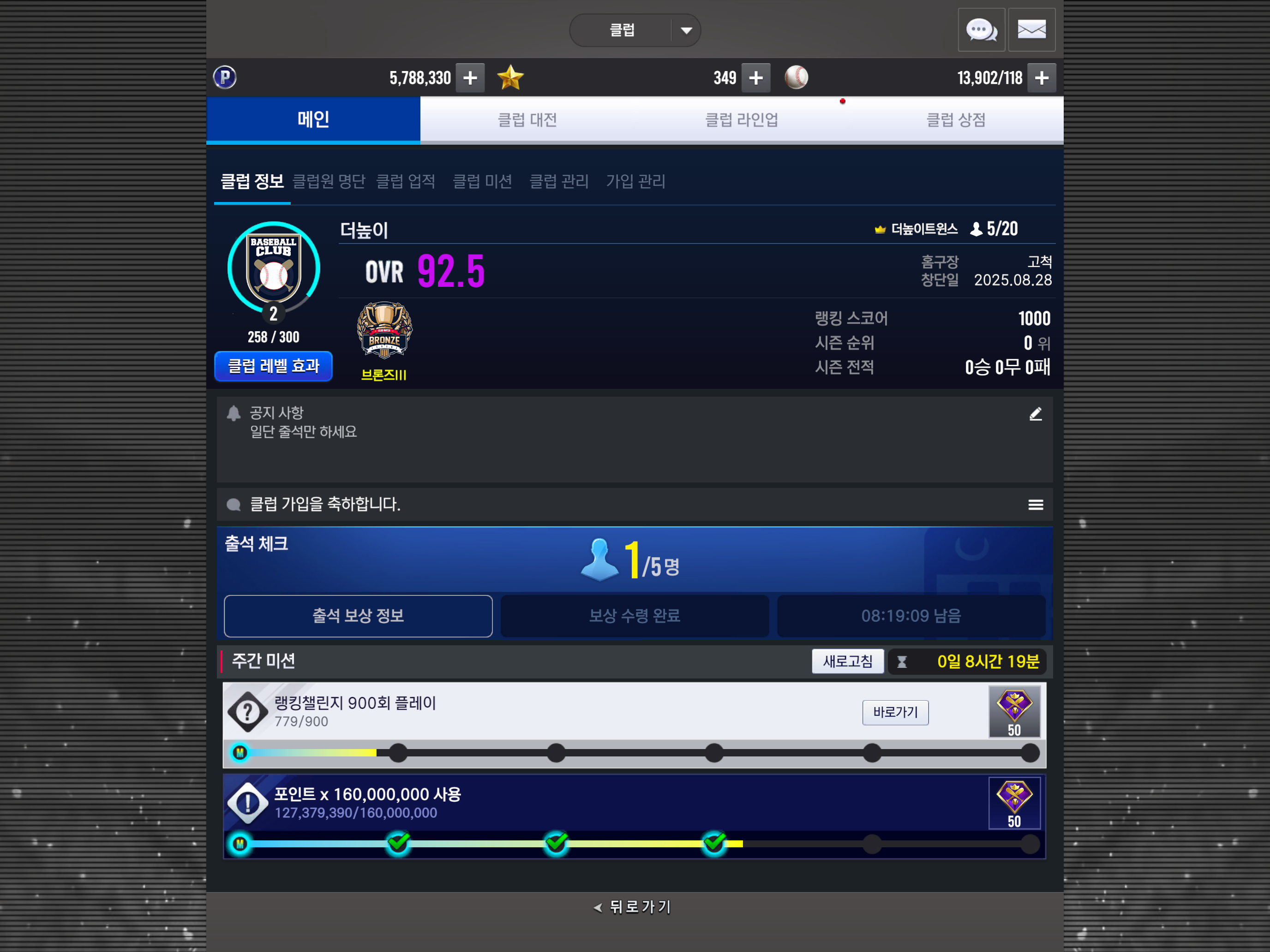 출석만 하면 되는 클럽이고 클대는 인원 20명을 채우고 인원 재구성후 진행됩니다