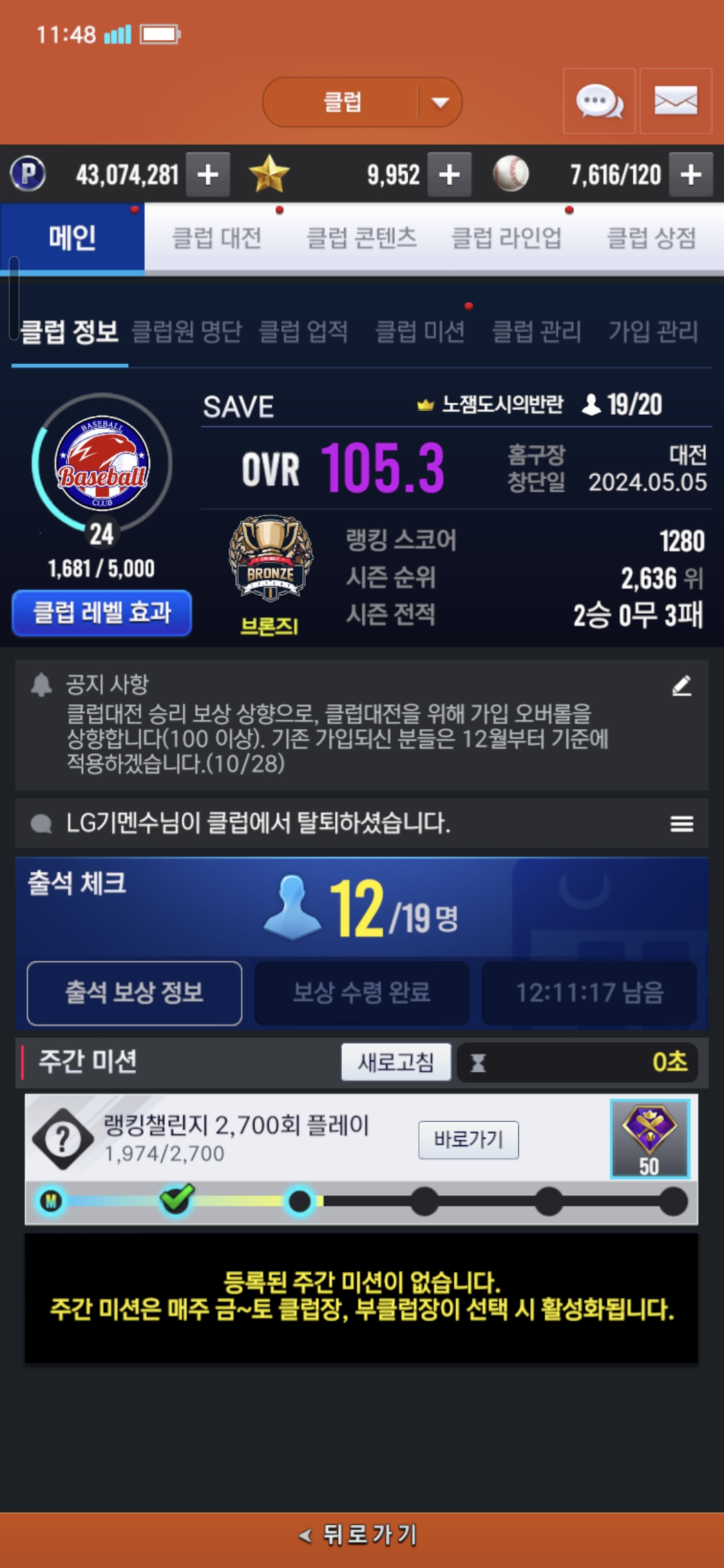 [SAVE]클럽에서 같이 게임 즐기실 분 1분 모십니다.