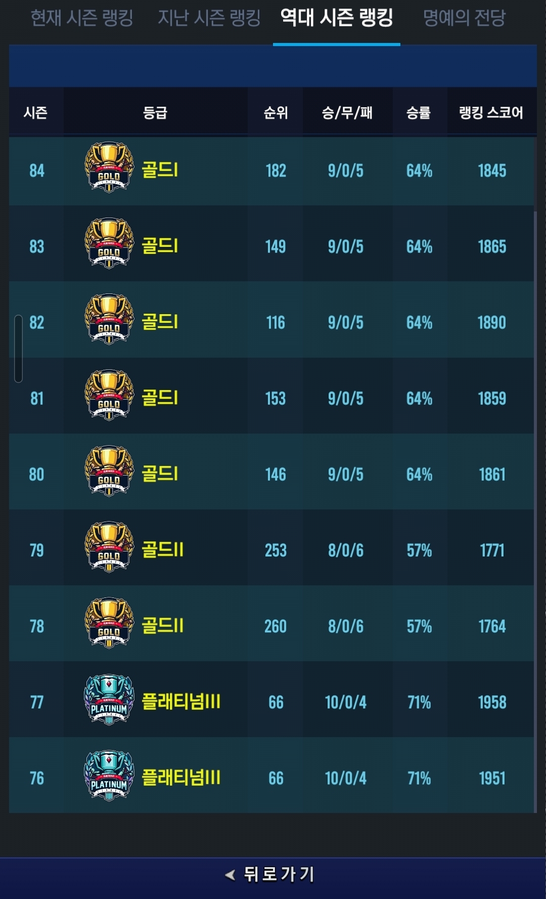 최근 순위는 100위권이지만 그전 지난 두시즌은 66위로 마무리 지었으며
