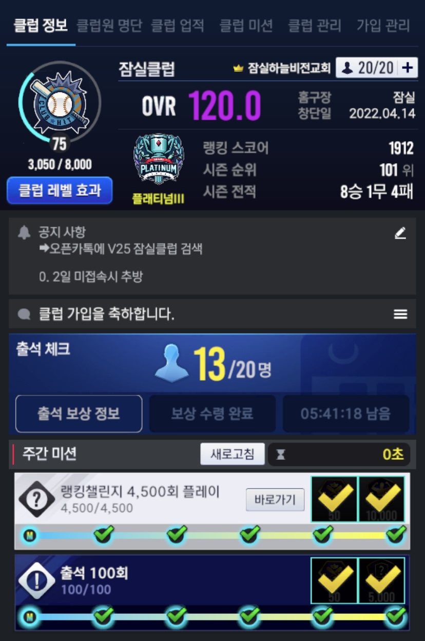 저희 잠실클럽은 게임오픈이래로 열심히 활동해온 클럽입니다.
