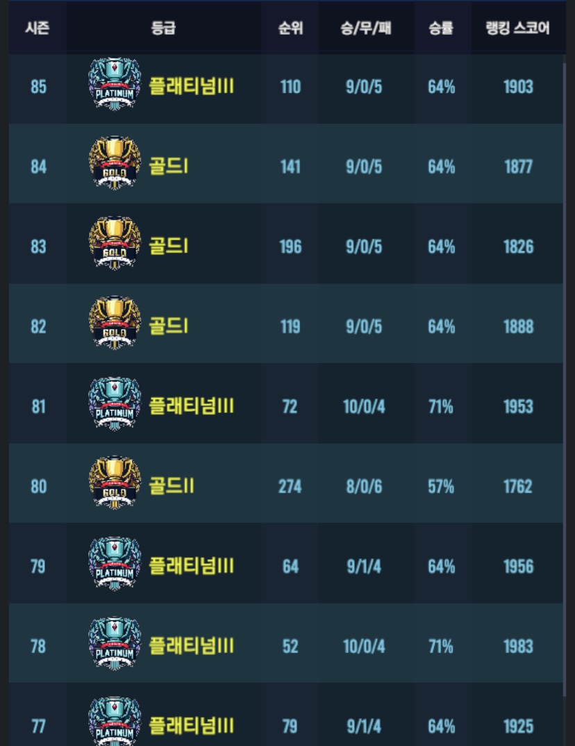 매 시즌 IN100을 목표로 매 시즌마다 열심히 달려가고 있습니다.
