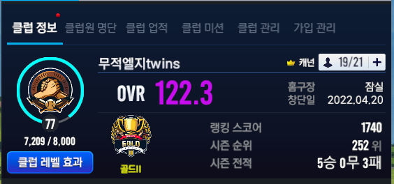 총 클럽원 21명으로 뚫어 두었습니다.