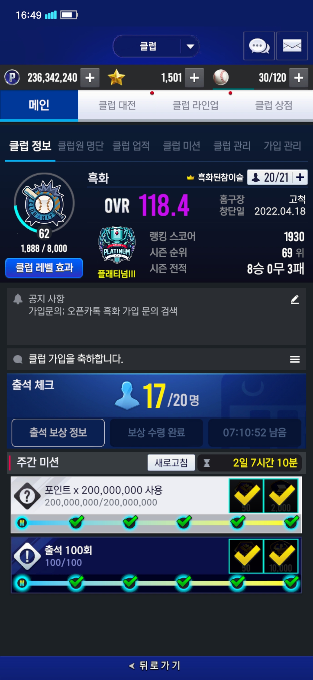 클럽콘텐츠도 열심히하고 이벤트도 많고 활발한 클럽입니다!!(최근 승부치기 2위!!)