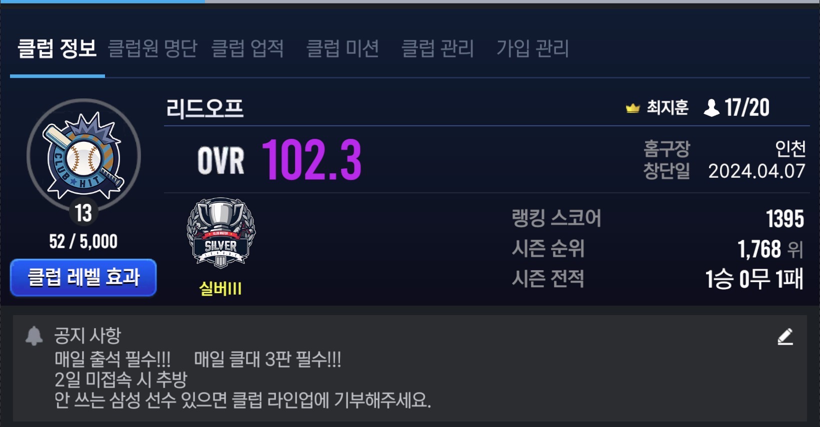 클럽 홍보 게시판 리드오프 클럽원 모집 (17/20) ⚾️ 최지훈 2025-12-23 15:17 76 0 공유 공유 URL 복사 페이스북 왓츠앱 카카오톡 라인 레딧 닫기 공유 관심있으신 분들 가입신청 넣어주세요 0 0 댓글 0
