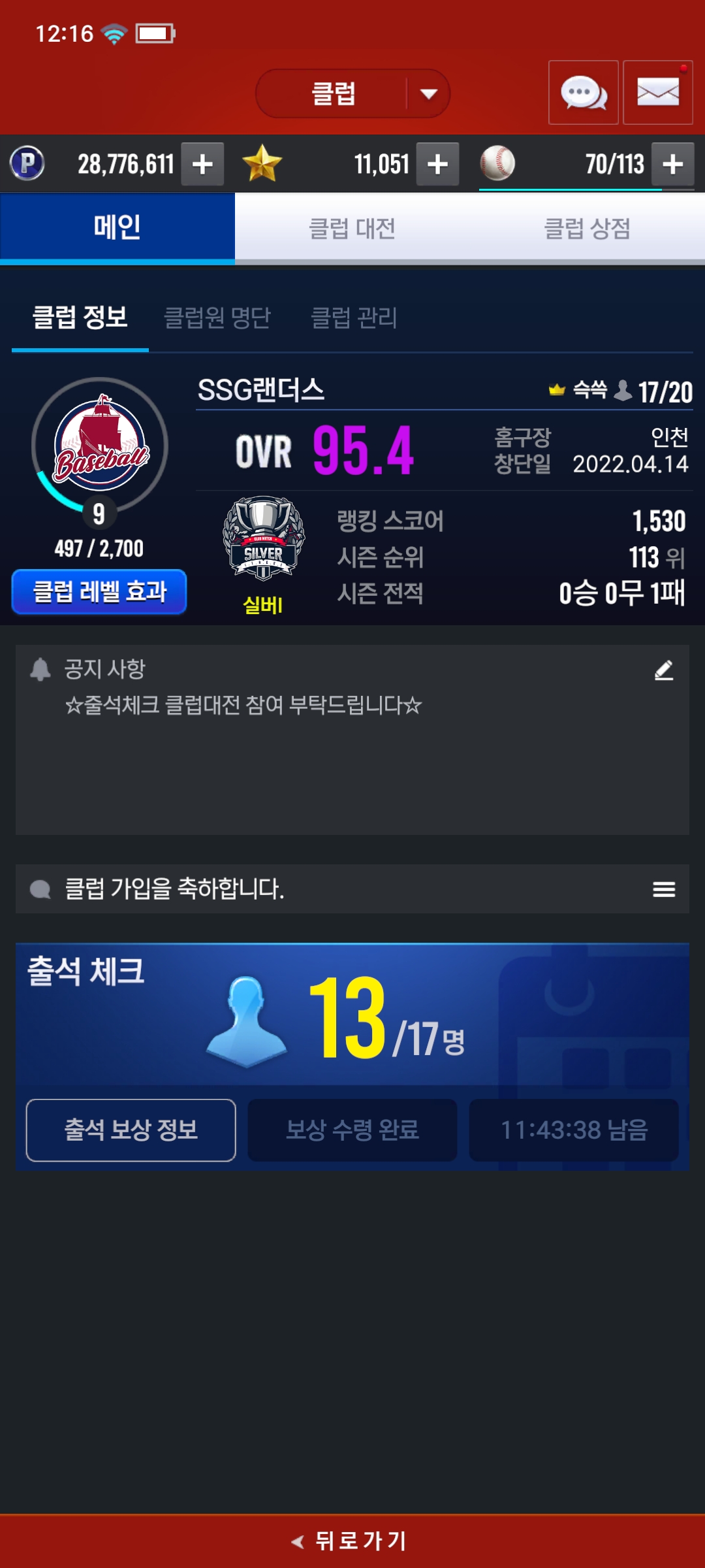 클럽 홍보 게시판 LV.9 [SSG랜더스] 클럽원 모집합니다 슥쓱 2022-12-12 12:21 77 0 공유 공유 URL 복사 페이스북 왓츠앱 카카오톡 라인 레딧 닫기 공유 0 0 댓글 0
