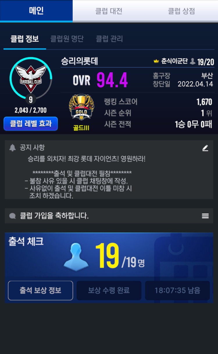 승리의롯데 클럽에서 함께 하실분들 모십니다.