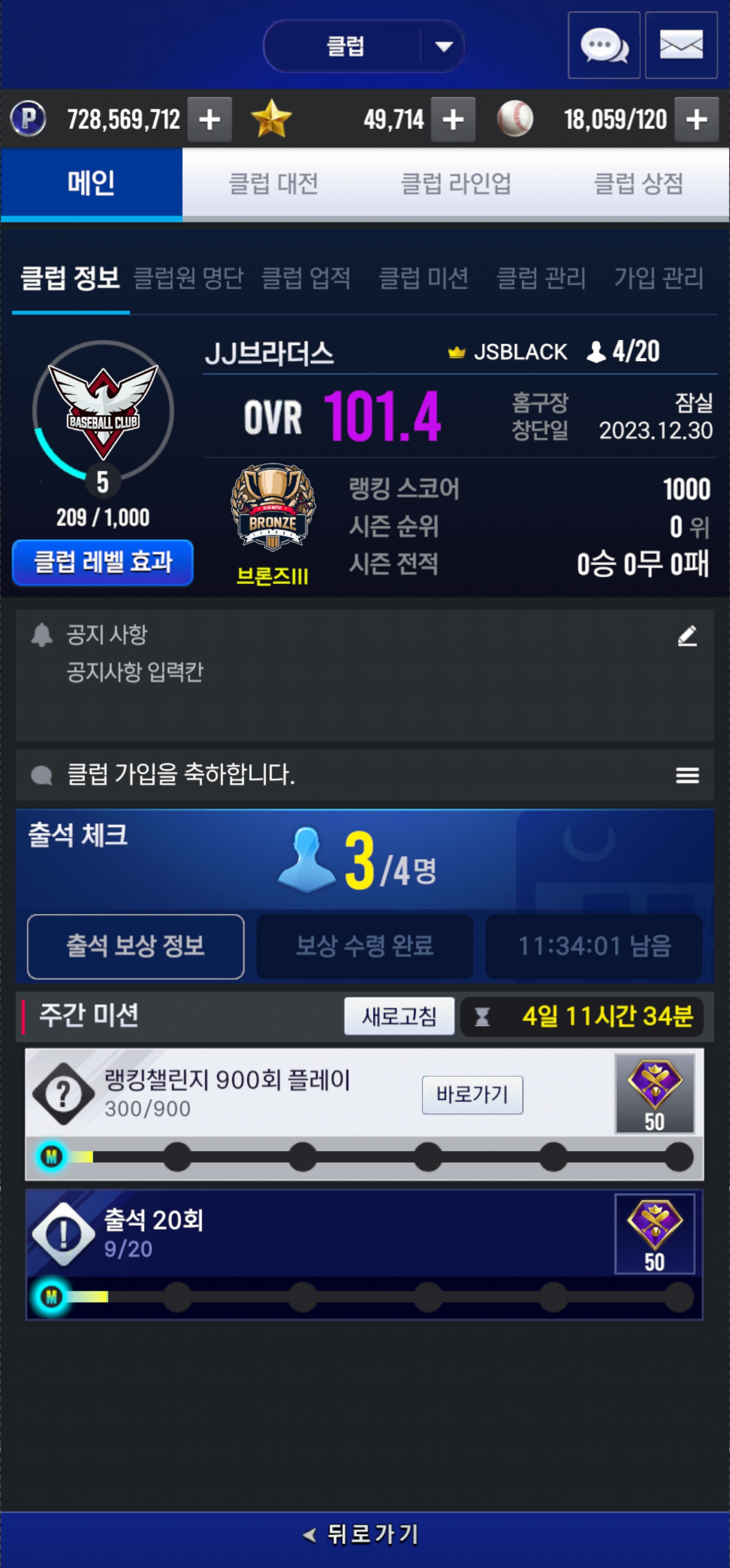 제발 클럽대전좀 하게 해주세요 매일 출석체크만 해주시면 됩니다