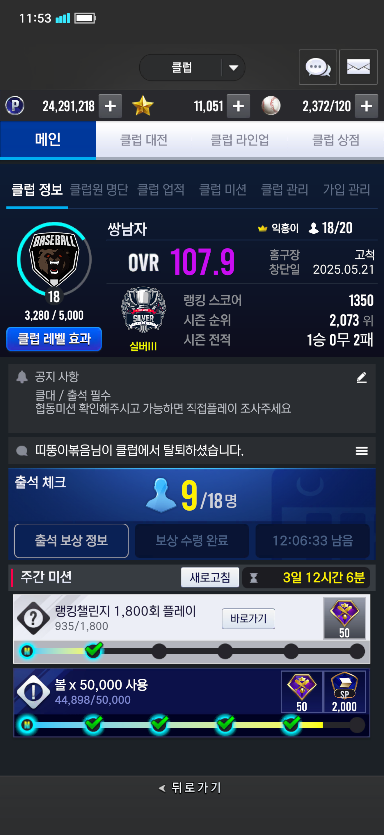 클럽 홍보 게시판 쌍남자 클럽원 모집 18/20 익홍이 2026-02-04 11:53 106 0 공유 공유 URL 복사 페이스북 왓츠앱 카카오톡 라인 레딧 닫기 공유 출석이랑 클대만 잘해주시면 됩니다 0 0 댓글 0