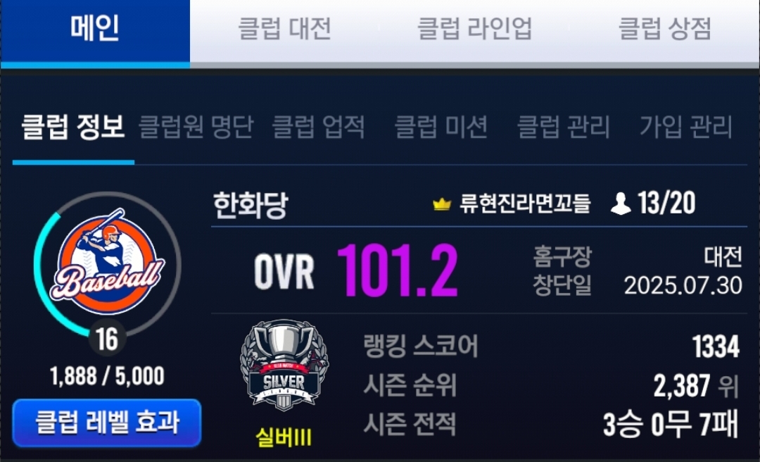클럽 홍보 게시판 [한화당]클럽에서 클럽원 모십니다. (13/20) 류현진라면꼬들 2026-01-30 21:48 77 0 공유 공유 URL 복사 페이스북 왓츠앱 카카오톡 라인 레딧 닫기 공유 꾸준히 함께 하실 분 모십니다 ^^ 0 0 댓글 0