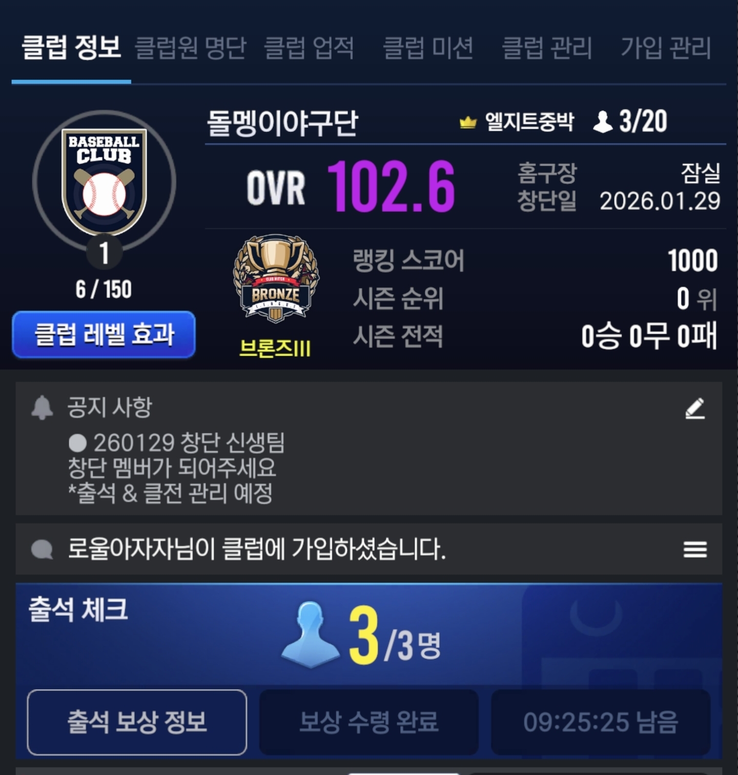 * 추후 출석 및 클럽전 관리는 철저히 할 예정입니다.