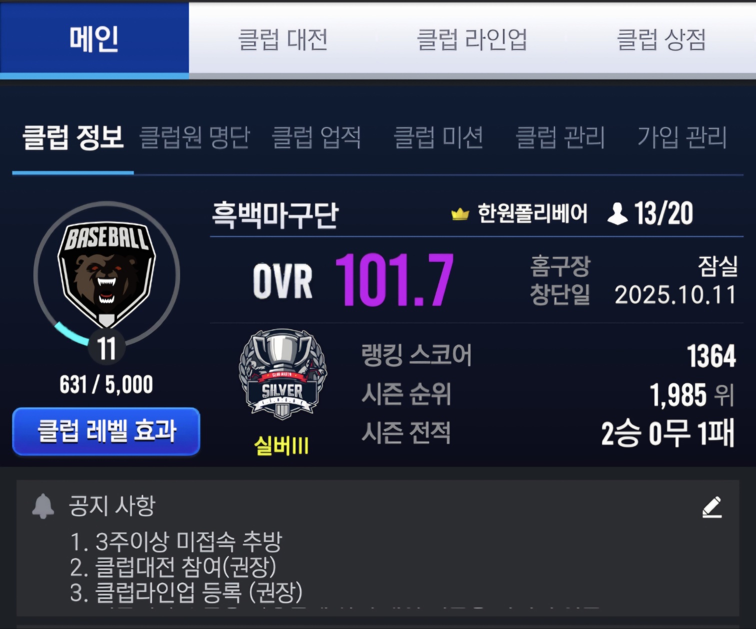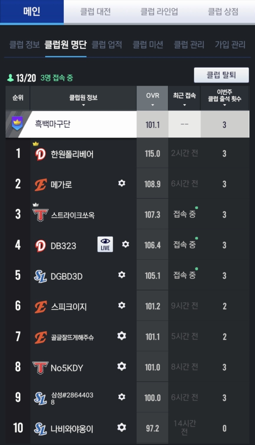 클럽대전 및 출석 성실하신 분 환영