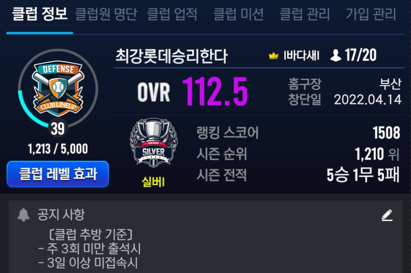(Lv.39)[최강롯데승리한다]클럽에서 활동을 함께할 분을 찾고 있습니다.[17/20]