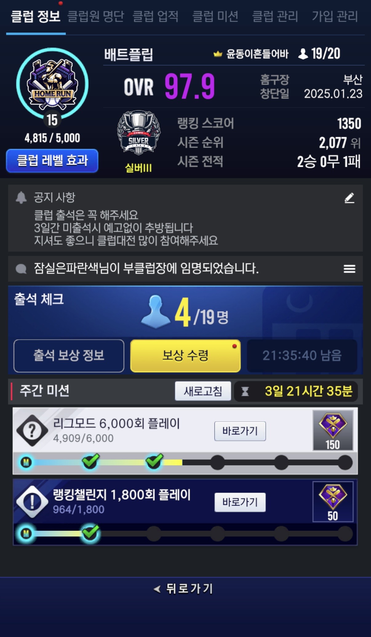 비록 자동 가입이지만 끊임없이 미접속 쳐내고, 지속 운영 중입니다.