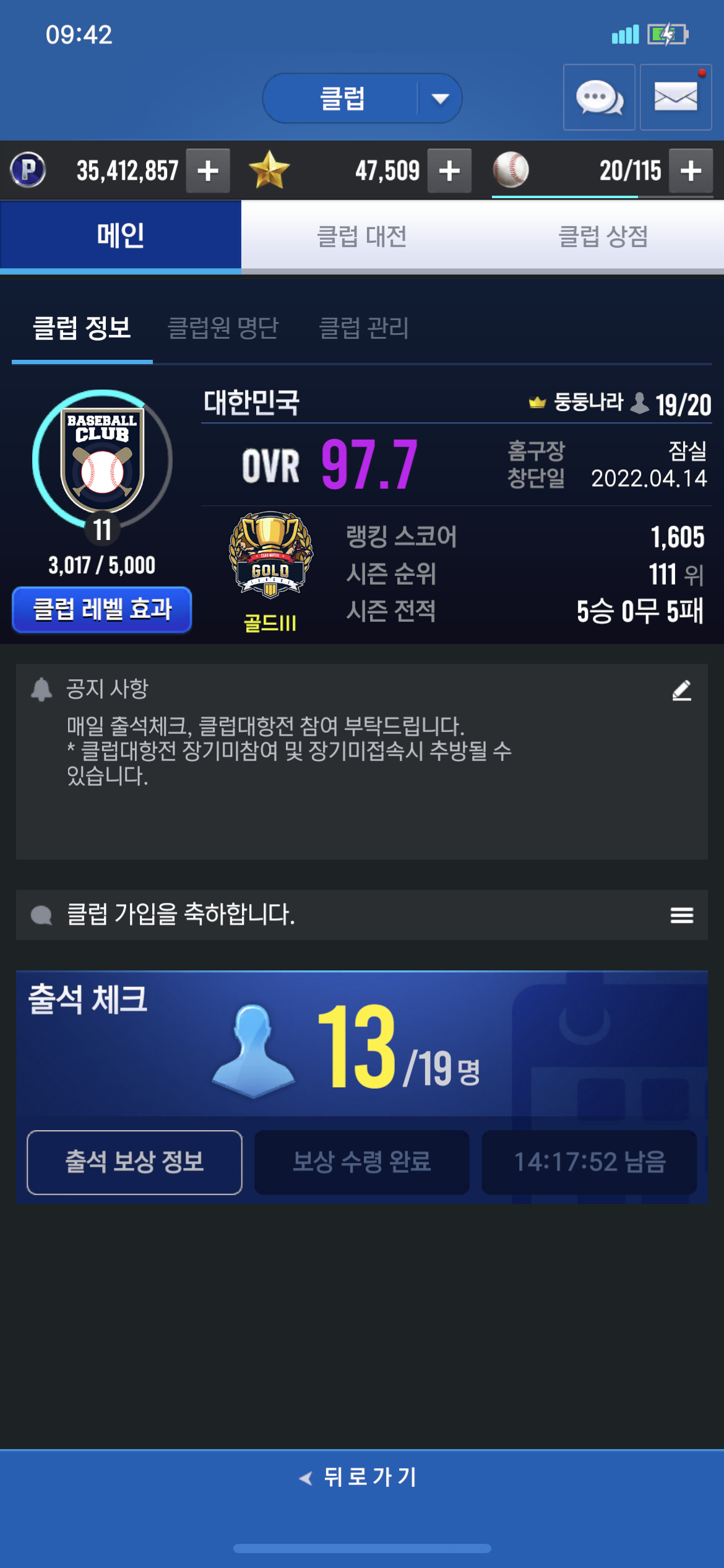 - * 클럽대전 장기미참여시 추방될 수 있습니다.(자동플레이도 괜찮으니 최소한 이틀~3일에 한번은 참여해주세요