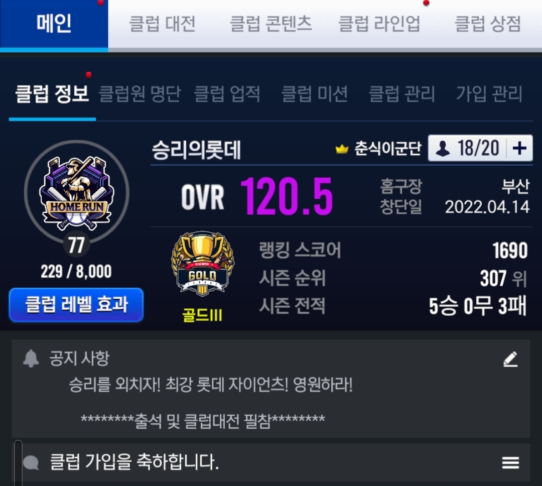 [승리의롯데] Lv.77 클럽에서 함께하실 클럽분들 모십니다.(19/20)