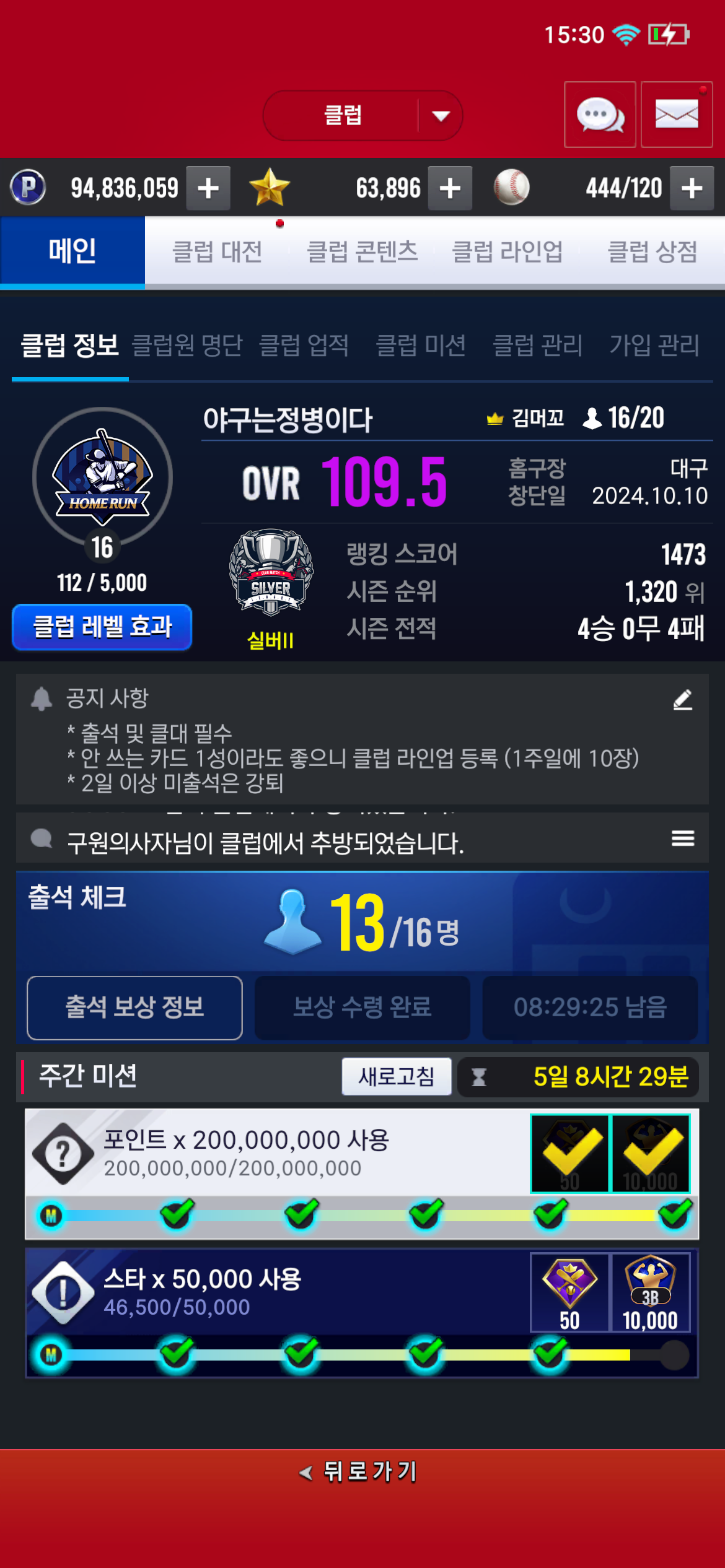 - 클럽레벨 16