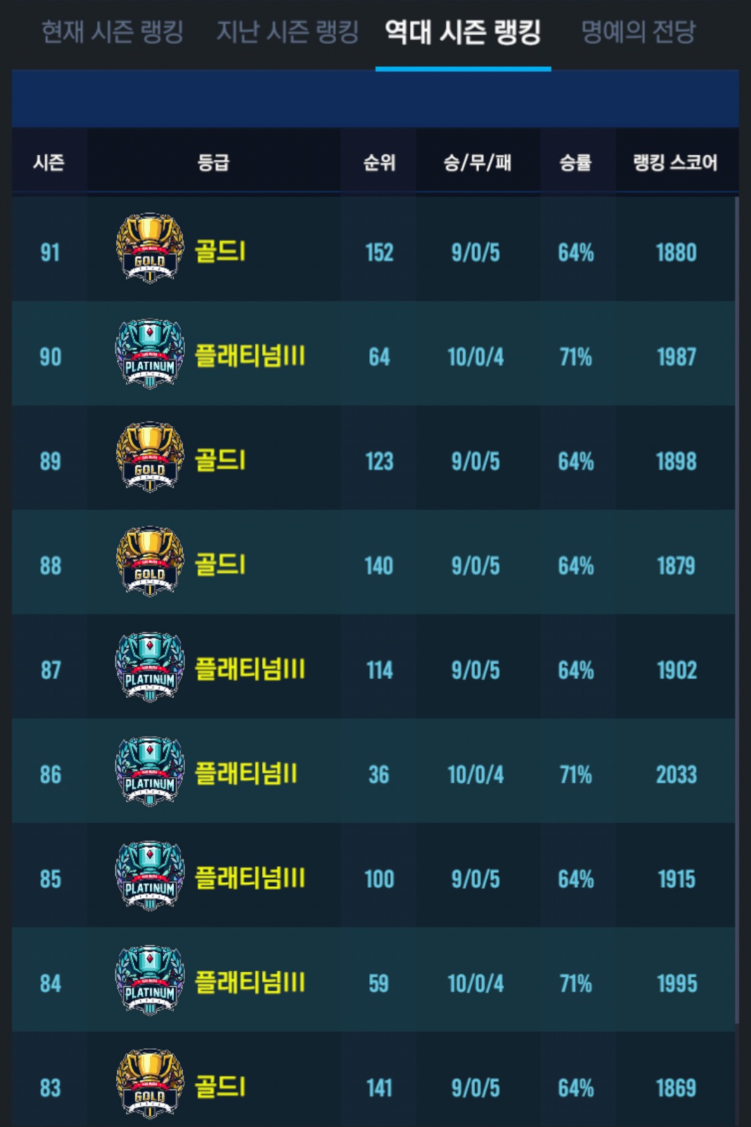 클럽대전 : 골1~플3(커하 30위, 평균 100위권)
