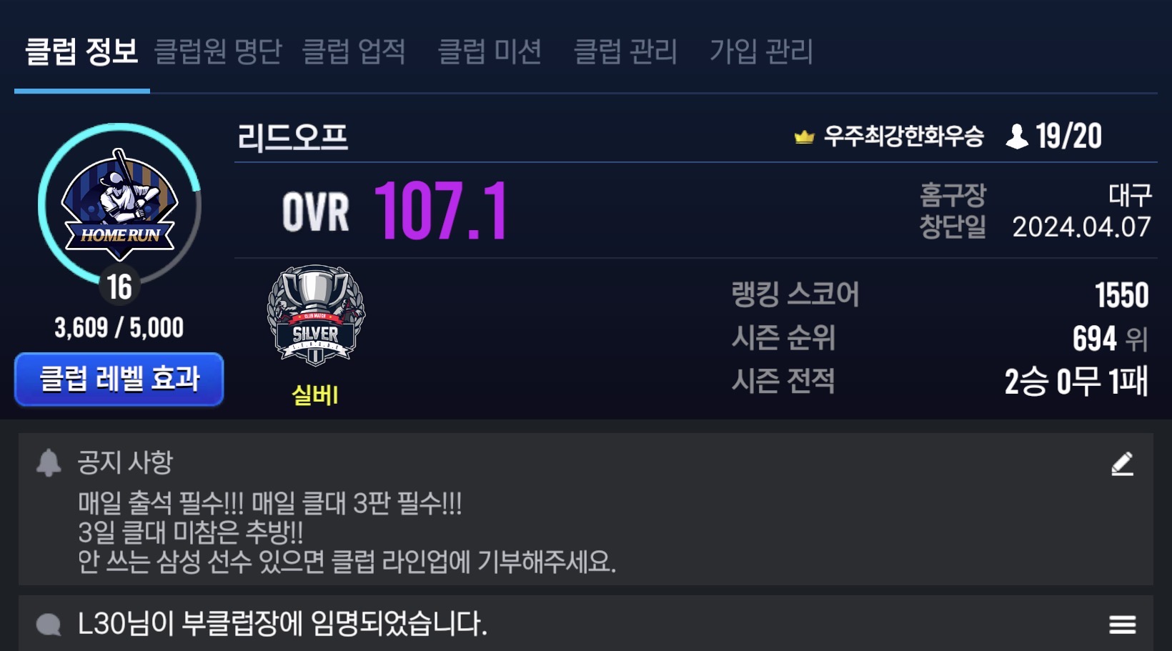 클럽 홍보 게시판 리드오프 클럽원 모집 (19/20) L30 2026-03-04 01:49 68 0 공유 공유 URL 복사 페이스북 왓츠앱 카카오톡 라인 레딧 닫기 공유 1 0 댓글 0