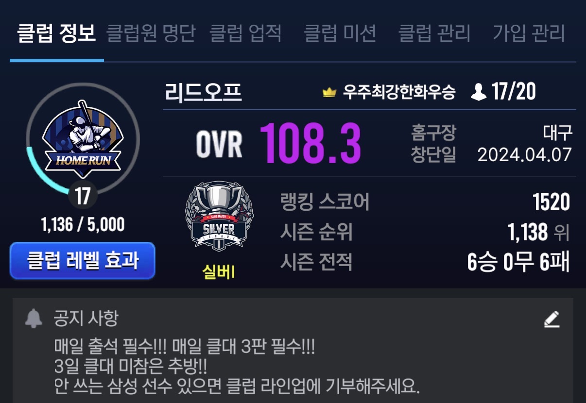 클럽 홍보 게시판 리드오프 클럽원 모집 (3명 구합니다) ✅ L30 2026-03-13 18:55 50 0 공유 공유 URL 복사 페이스북 왓츠앱 카카오톡 라인 레딧 닫기 공유 오버률은 최소 101이상 2 1 댓글 0
