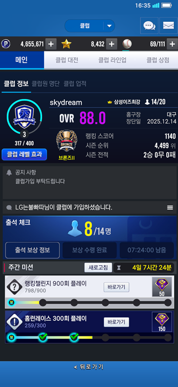 출석 꼬박꼬박 해주시면 좋고, 클럽대전도 원하시면 참여하셔도 좋습니다.
