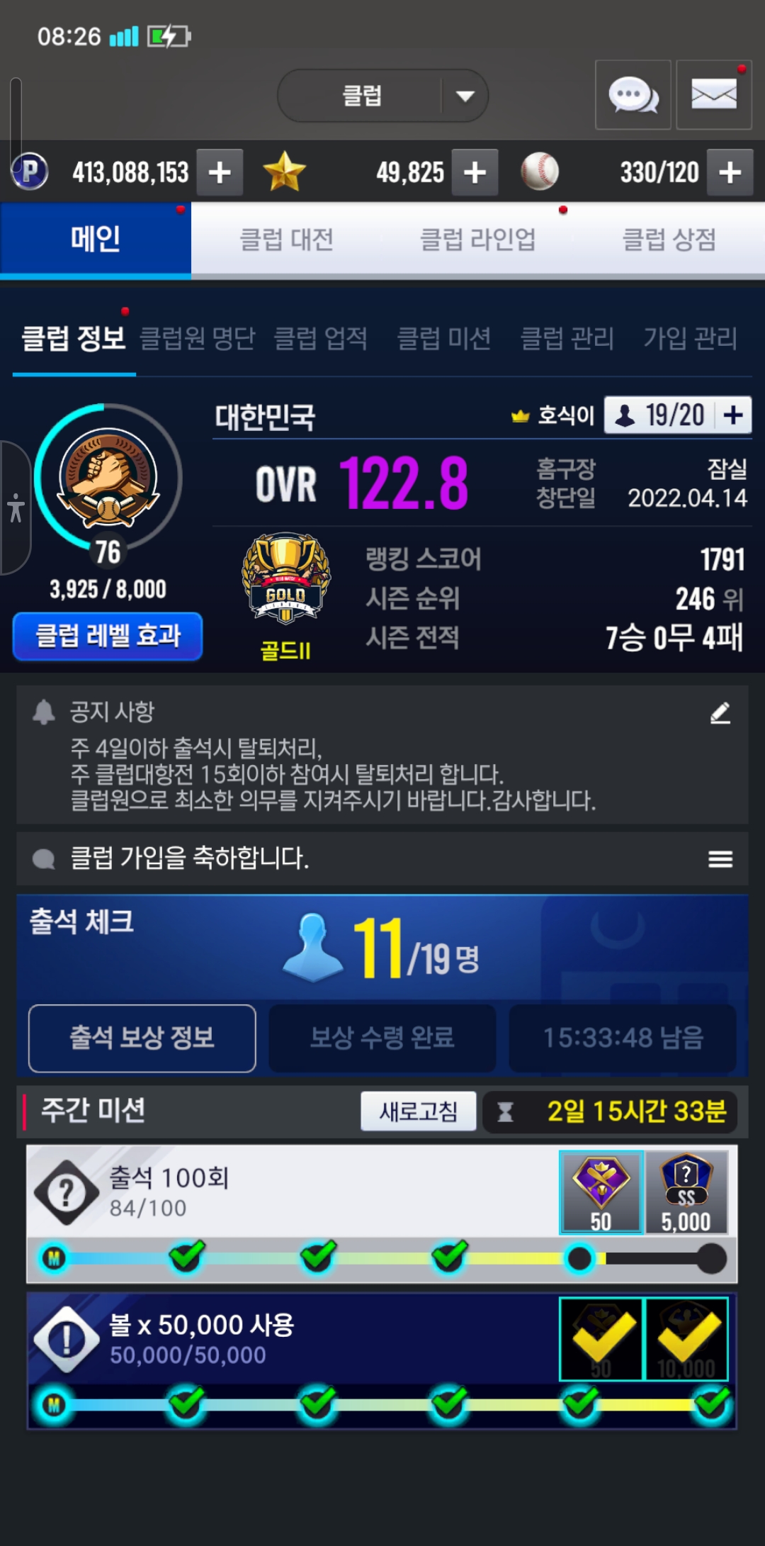 출석, 클럽전 참여는 꼭 부탁드립니다. 오버롤 120 이상 신청 바랍니다. 단톡은 없습니다. 편하게 꾸준하게 하실분 대 환영합니다.