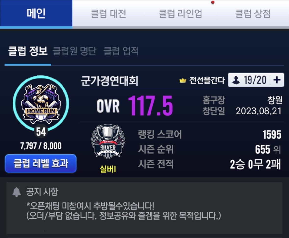 출석/클럽대전 불참으로 인한 경고 3회시 추방