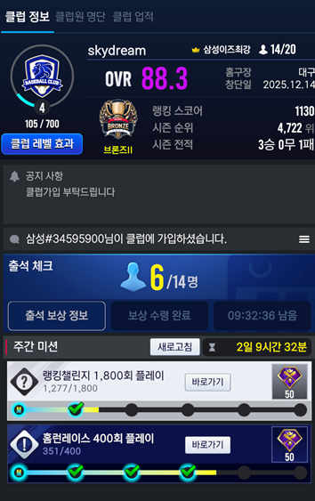 출석 꼬박꼬박 해주시면 좋고, 클럽대전도 원하시면 참여하셔도 좋습니다.