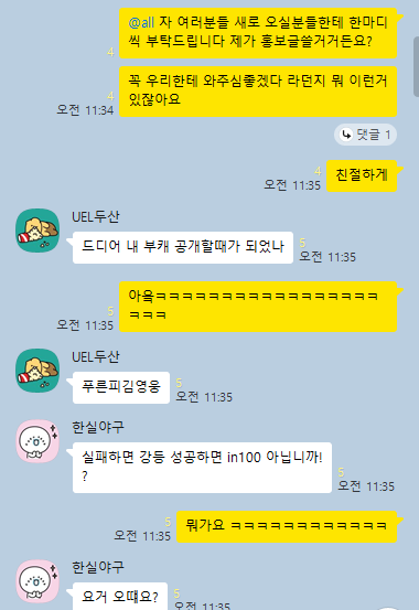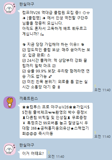 톡방에서 게임이나 야구포함 이런저런 대화도 하고싶은 초보 분들 적극적으로 권합니다.