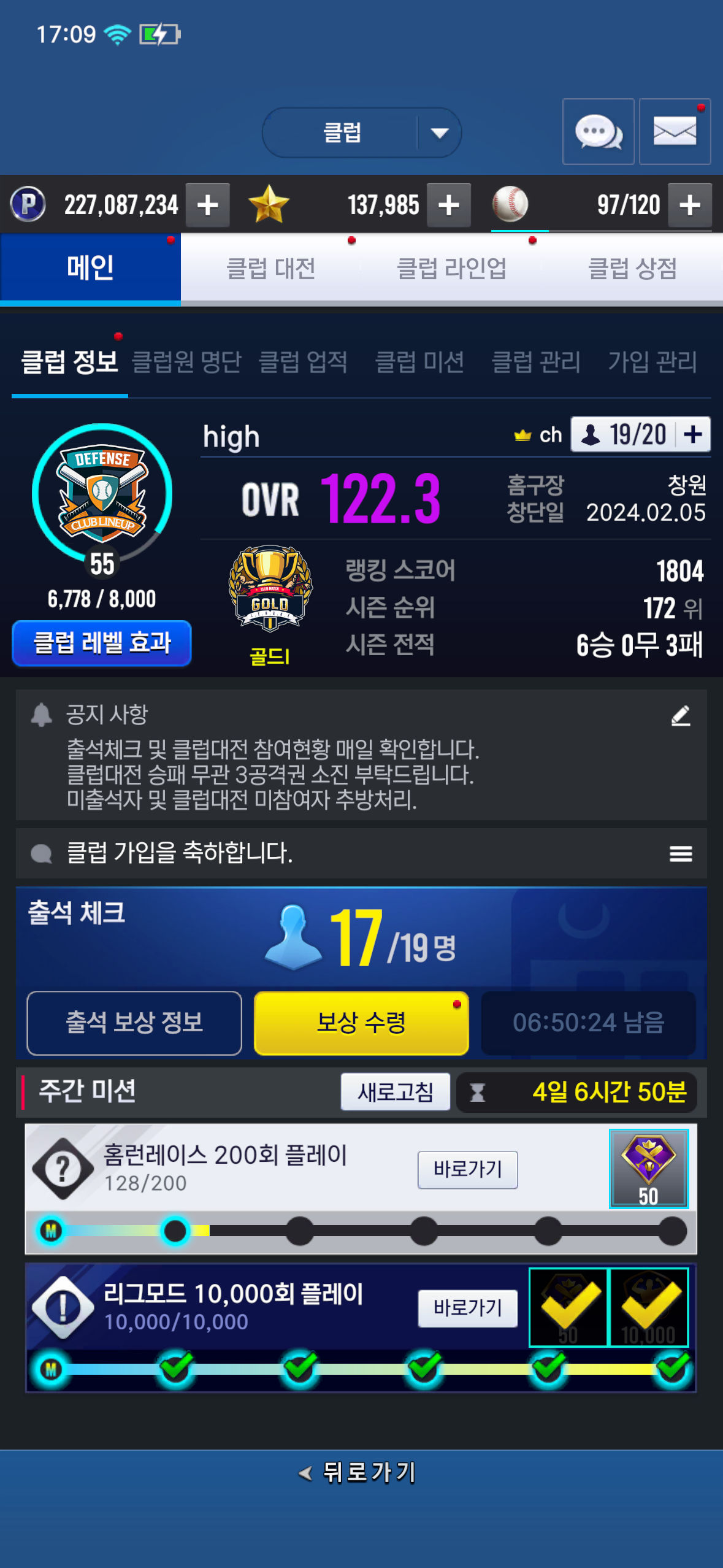 클럽 홍보 게시판 56렙 high 에서 클럽원 구해요 high 2026-04-01 21:39 51 0 공유 공유 URL 복사 페이스북 왓츠앱 카카오톡 라인 레딧 닫기 공유 클대 출석 필수꾸준히 하시는분랭첼 3천등 이내 신청주세요 high 0 0 댓글 0