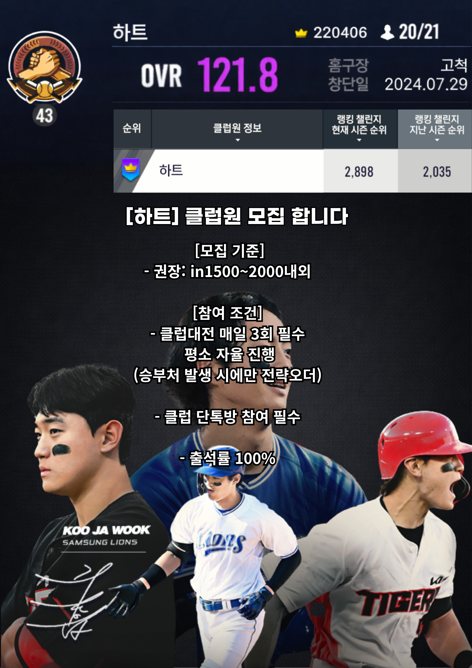 [하트] 시즌 in100 안착! 랭킹 17위 '하트' 클럽원 모집합니다.