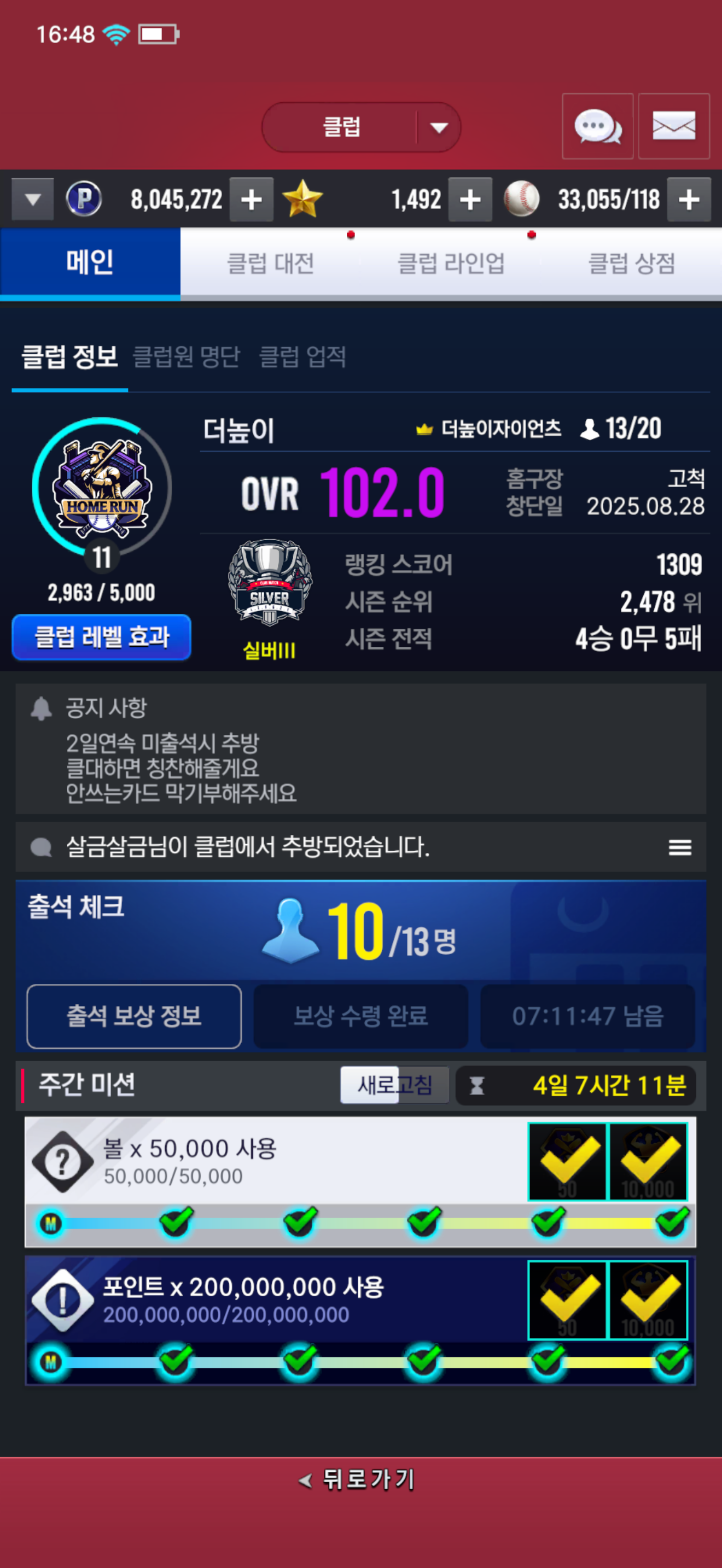 클럽 홍보 게시판 초보 환영클럽 더높이거지들 2026-04-07 16:49 84 5 공유 공유 URL 복사 페이스북 왓츠앱 카카오톡 라인 레딧 닫기 공유 초보도 출석만 잘하면 챙겨드립니다 클대는 엥간히만 해주세요 0 0 댓글 5