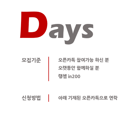새롭게 태어난 Days에서 함께 하실분을 찾습니다!