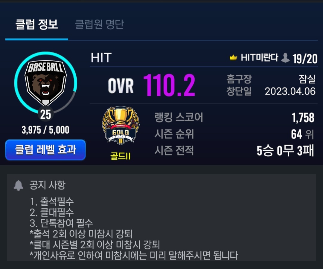 편안한 분위기의 단톡방 운영중입니다 평소 클랍대전 오더는 없으며 비등비등한 경우에만 오더 있습니다.