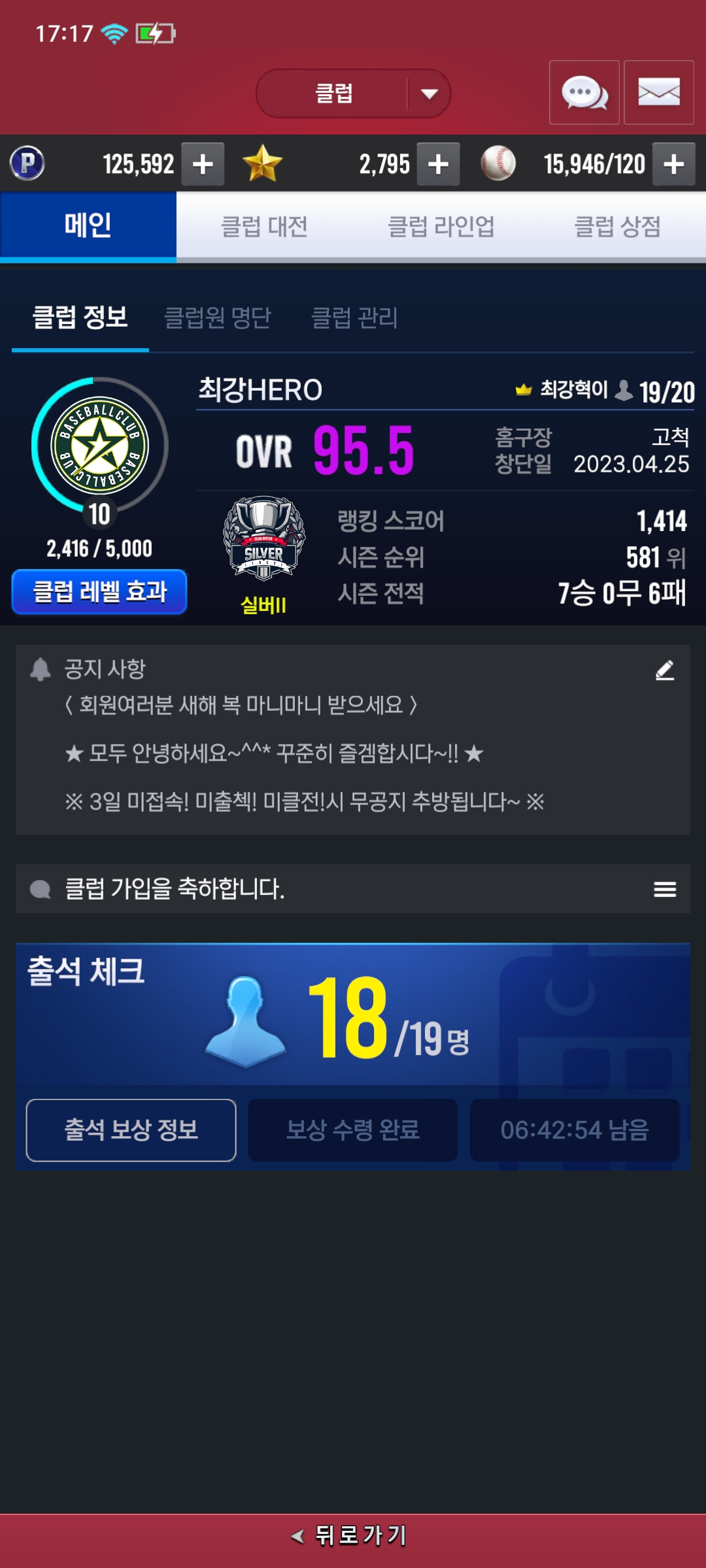 ※ 출첵, 클럽대전은 기본중에 기본!!! ※