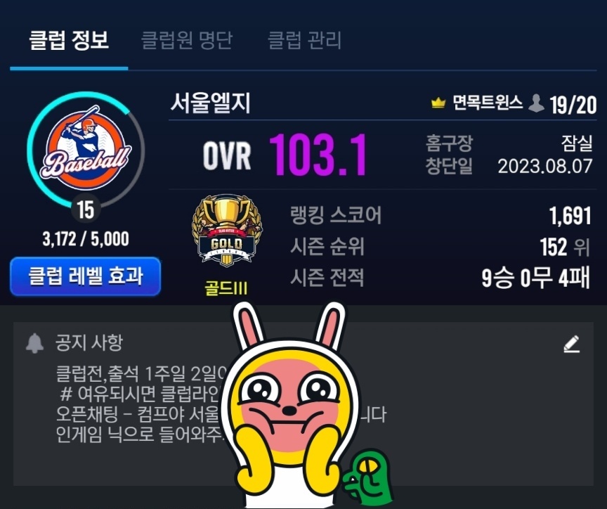 클럽 홍보 게시판 서울엘지 19/20 클럽원 모십니다 면목트윈스 2024-01-22 05:43 159 0 공유 공유 URL 복사 페이스북 왓츠앱 카카오톡 라인 레딧 닫기 공유 매일 출석,클럽전 3회 가능하신분ovr 100이상이신분 모십니다!! #엘지 #lg #클럽 #가입 1 0 댓글 0