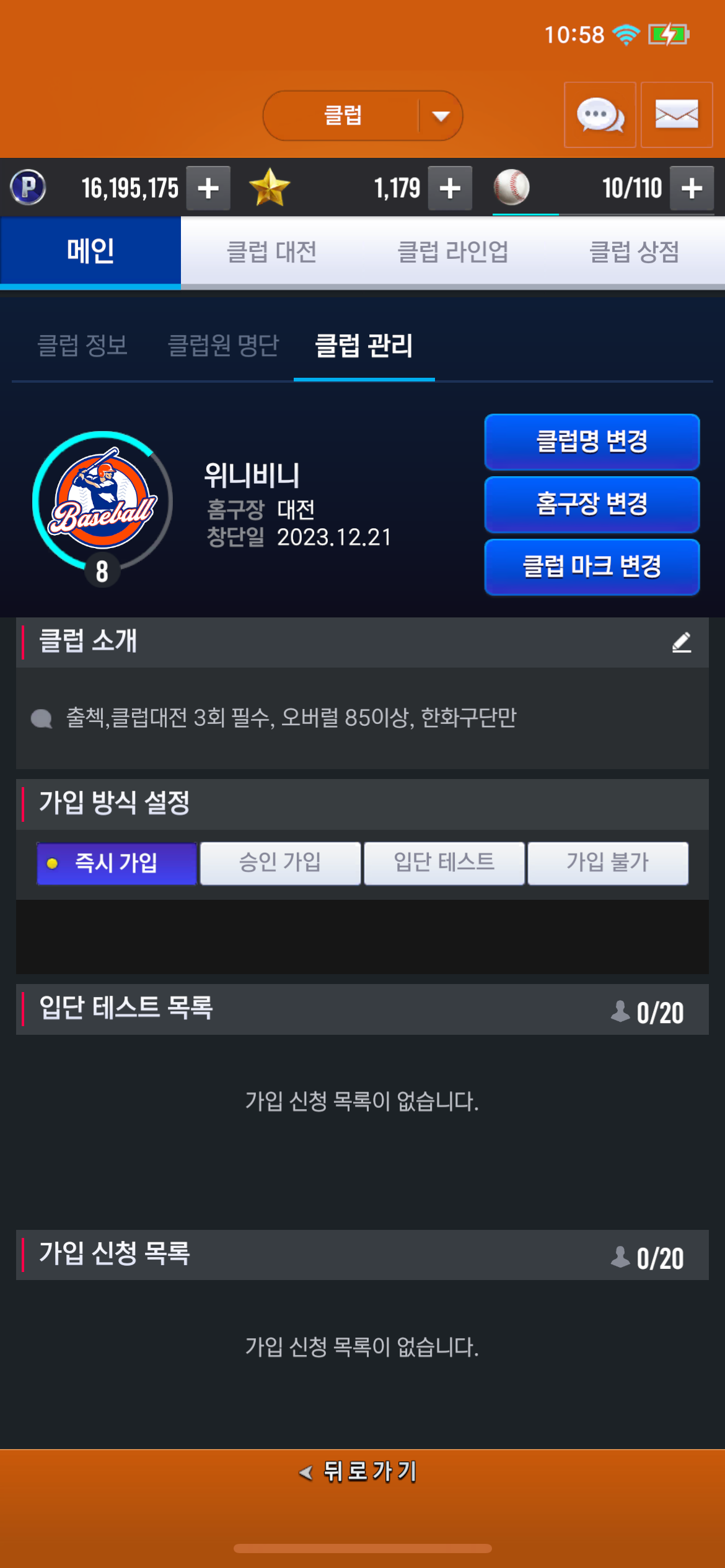 ▶ 가입조건 : 한화 이글스 구단주/오버럴 85이상