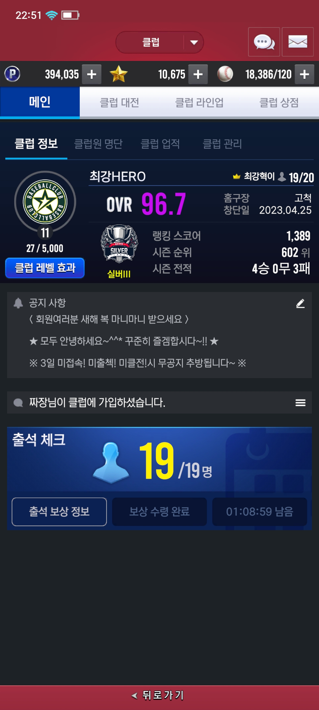 ※ 출첵, 클럽대전은 기본중에 기본!!! ※