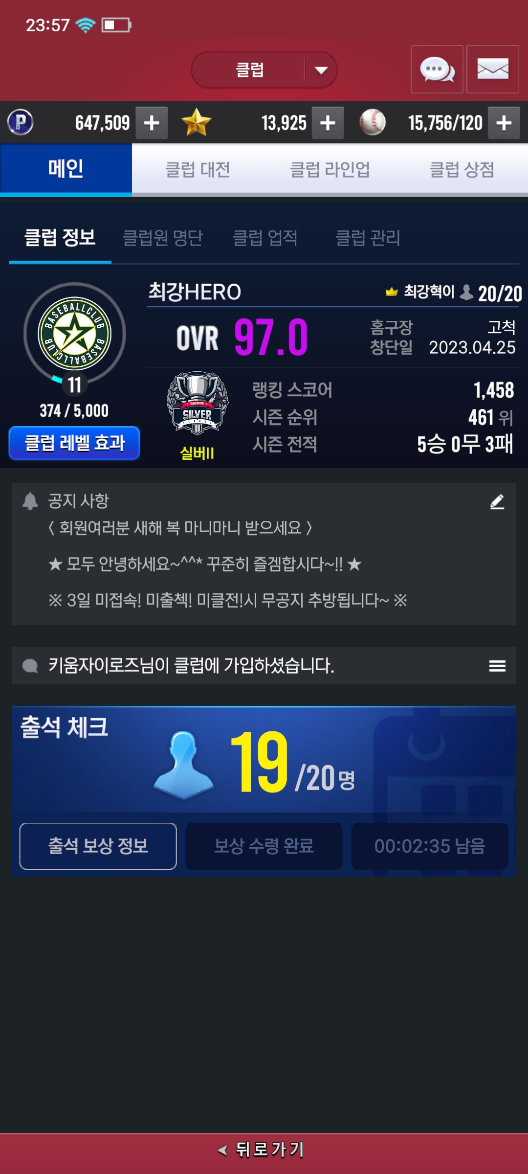 ※ 출첵, 클럽대전은 기본중에 기본!!! ※