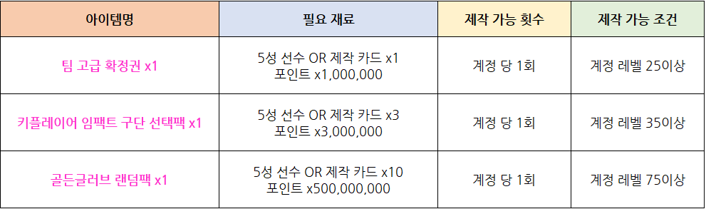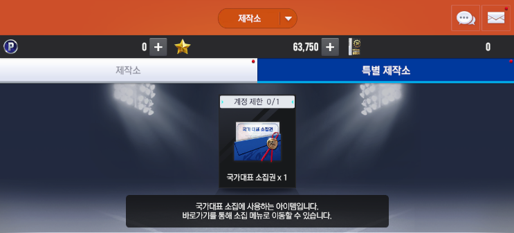 - [국가대표 소집권]은 계정 당 1회 제작이 가능할 예정이며
