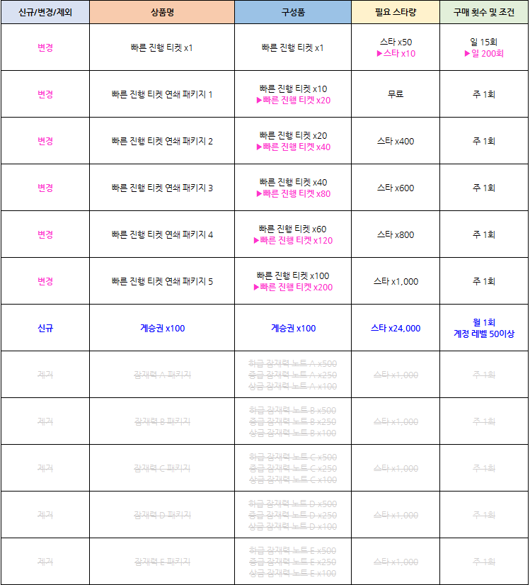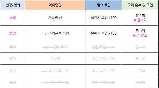 - 상점-콘텐츠 상점의 일부 상품이 조정됩니다.