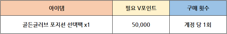 - 상점-V 포인트 상점에 [골든글러브 포지션 선택팩x1]이 추가됩니다