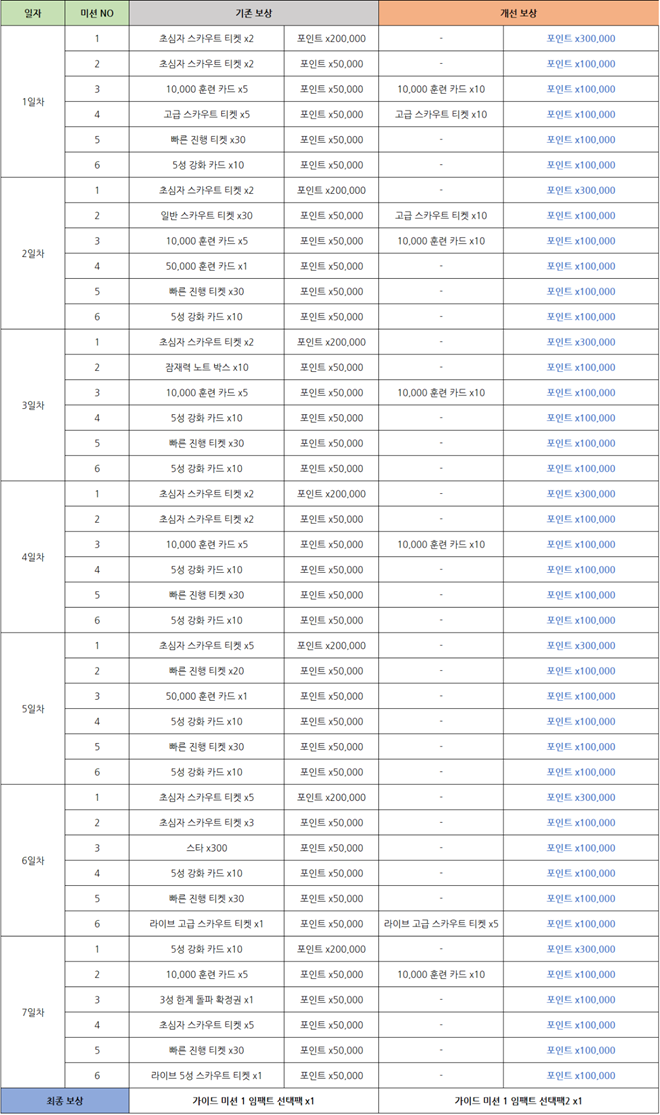 ![]() | 가이드 미션 1 보상 리뉴얼 및 재오픈 |